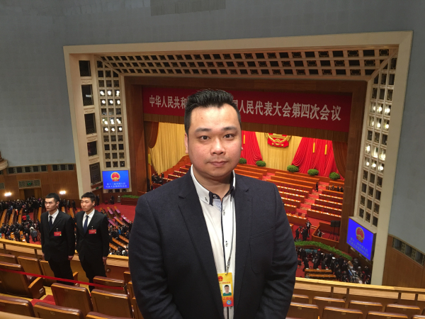 記者周偉琪(右)專(zhuān)訪香港全國(guó)人大代表陳勇(左)