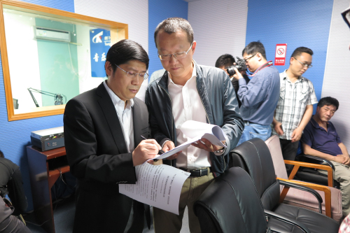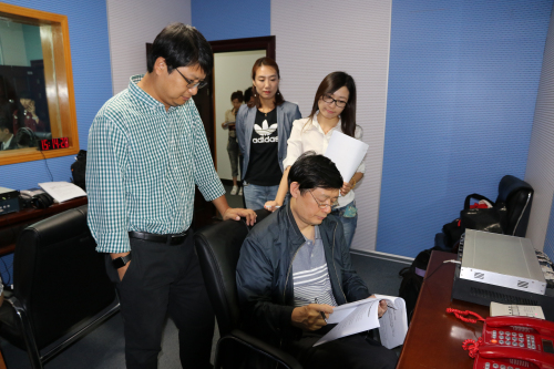 陜西站黃立新站長與對港澳節(jié)目中心新聞部副主任孫洪濤修改稿件