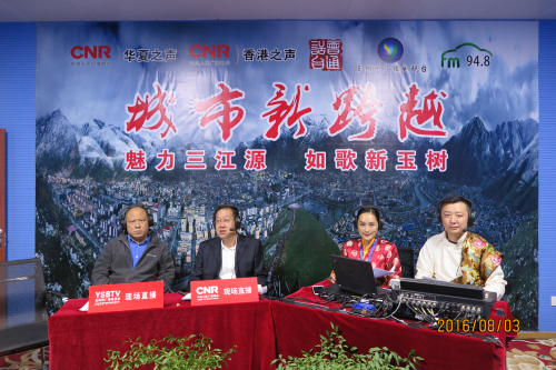 8月3日,由中央人民廣播電臺(tái)華夏之聲、香港之聲、香港電臺(tái)普通話臺(tái)與玉樹州廣播電視臺(tái)合作推出的大型直播節(jié)目《城市新跨越》在玉樹市完成直播《魅力三江源,如歌新玉樹》。