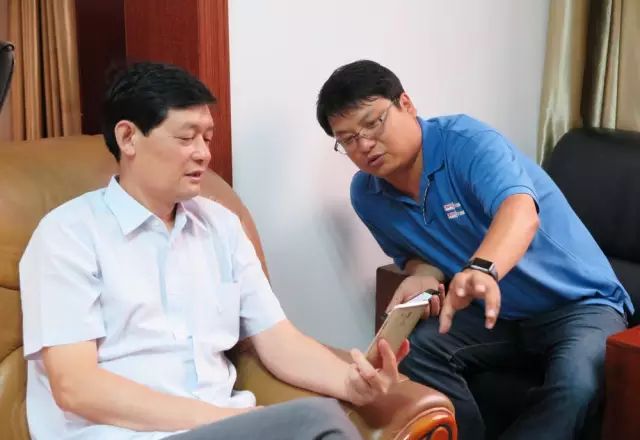 主任韓長(zhǎng)江(左)、副主任胡翼(右)通過(guò)手機(jī)收聽直播