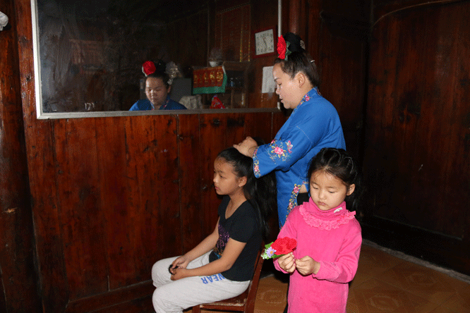 王奕、王雅嫻以及小妹王淑琴終于在木樓里穿上了盛裝,漫長(zhǎng)的過(guò)程充滿(mǎn)著親情和喜悅。當(dāng)銀裝穿戴整齊,小姑娘們也變得光彩照人。