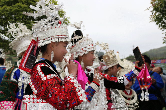 這樣的衣服穿在身上很不舒服,但孩子們?nèi)匀粺o(wú)比期待盛裝巡游。盛裝巡游無(wú)異于一個(gè)狂歡節(jié),每個(gè)女孩都要盡可能把自己最美的一面展現(xiàn)出來(lái)。苗族盛裝是任何今天的時(shí)裝無(wú)可替代的。