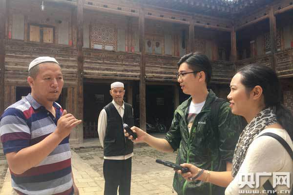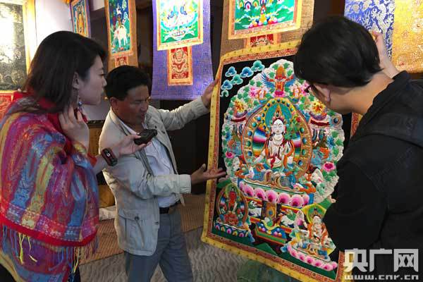 采訪熱貢藝術(shù)傳承人夏吾角大師(左)