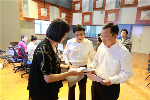 陜西記者站站長黃立新、對港澳節(jié)目中心副主任萬梅與中共寶雞市委常委、寶雞市副市長馬赟做直播前溝通