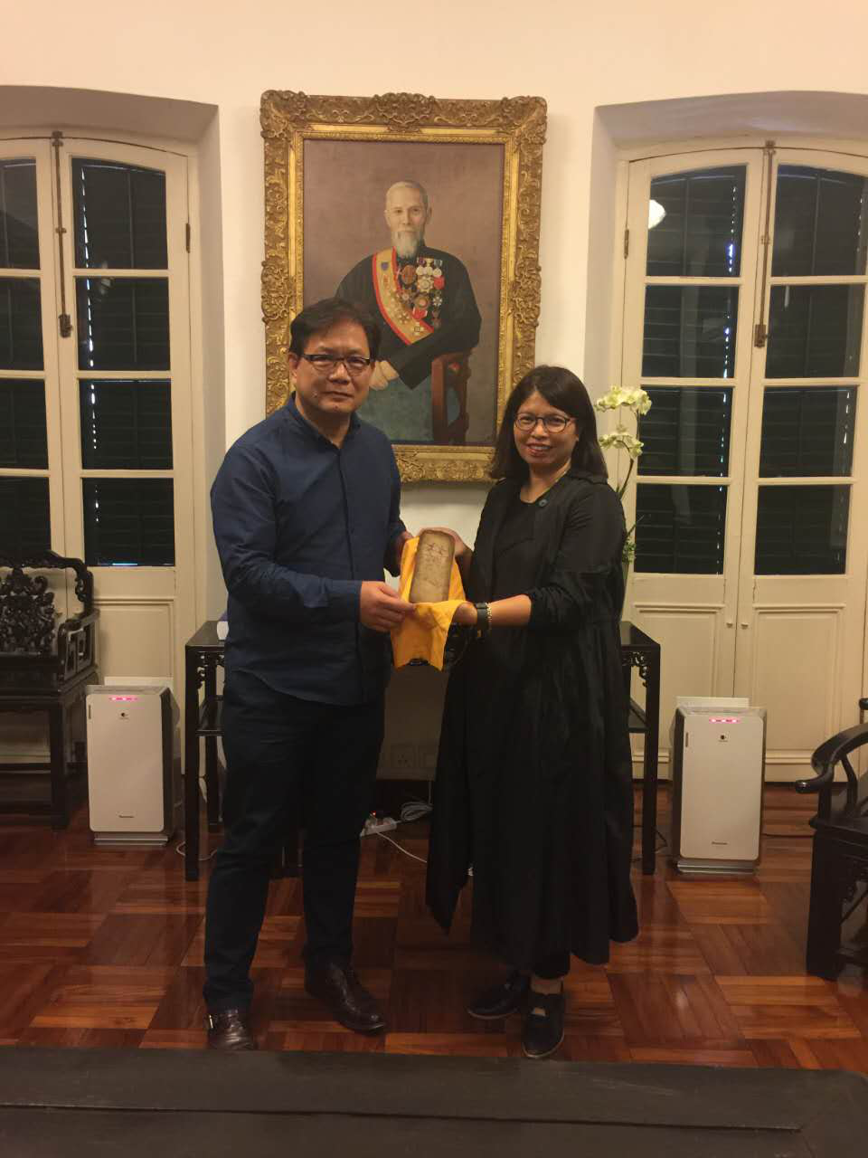 圖左為香港中國(guó)民族民間文化藝術(shù)交流協(xié)會(huì)副會(huì)長(zhǎng)余昭科,圖右為澳門(mén)公共圖書(shū)館管理廳廳長(zhǎng)鄧美蓮。