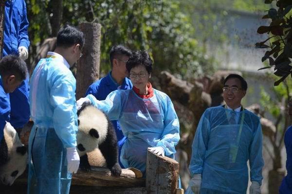 (圖為:5月11日香港政務(wù)司司長林鄭月娥率領(lǐng)香港特區(qū)代表團(tuán)訪問四川)