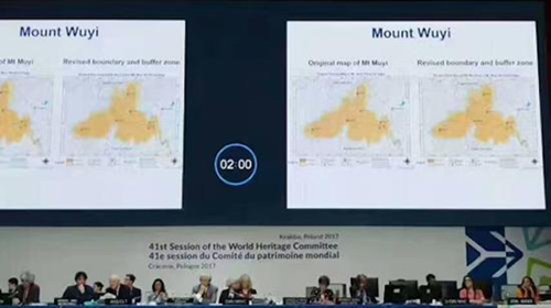 圖為世界文化和自然遺產(chǎn)武夷山邊界調(diào)整項目審議現(xiàn)場