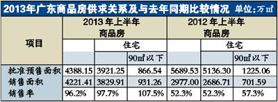 昨日,廣東省房協(xié)市場分析課題組發(fā)布《2013年上半年廣東房地產(chǎn)市場分析》,數(shù)據(jù)顯示,今年上半年,90平方米以下商品住宅批準預售面積866.54萬平方米,同比減少29.3%,下滑速度超過整個預售面積的下滑速度(20%)。而90平方米以下商品住宅的銷售率高達107.5%,比去年同期提高50.2個百分點,高于整體商品住宅9.8個百分點,小戶型產(chǎn)品供求關(guān)系更為緊俏。