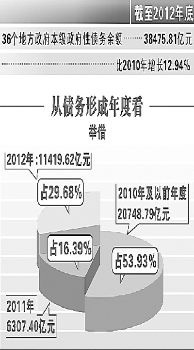 第二次是2012年11月至2013年2月,為摸清地方政府性債務(wù)增長(zhǎng)變化情況,審計(jì)署對(duì)36個(gè)地方政府本級(jí)2011年以來政府性債務(wù)情況進(jìn)行了審計(jì)。數(shù)據(jù)顯示,截至2012年底,這36個(gè)地方政府本級(jí)政府性債務(wù)余額3.85萬億元,比2010年增長(zhǎng)12.94%。