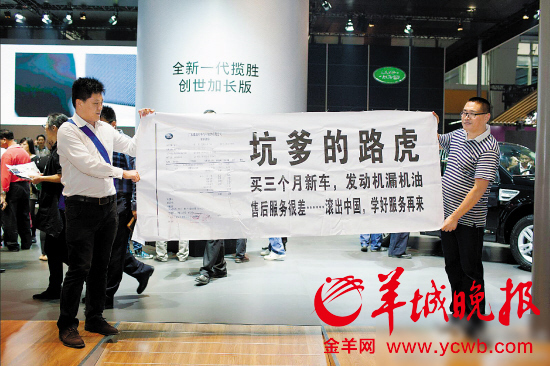 廣州車(chē)展上路虎遭維權(quán) 橫幅:滾出中國(guó)
