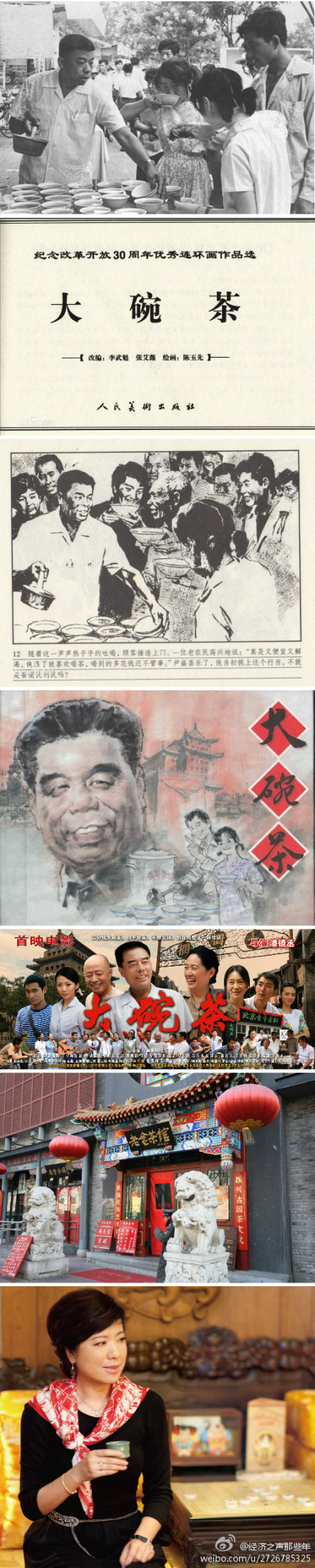 主持人:在微博上有朋友說,高中的時候?qū)W老舍的茶館,老師給我們看了那部經(jīng)典電影茶館,至今這部電影還是我最喜愛的電影之一,后來畢業(yè)找工作我看到老舍茶館招聘,我還投了簡歷,然后很遺憾沒有進入這家公司。我覺得聽了節(jié)目之后,四個字太遺憾了。沒錯你去那你天天可以喝兩分錢的大碗茶,礁石浪花說,尹盛喜先生在難忘的歲月里,以赤誠火熱的心,以感恩為先,肩負(fù)大義投身商海,為待業(yè)青年送去溫暖,為社會送去了溫暖,有如大碗茶股股清香,在人間潺潺流淌、徐徐飄逸暖人心扉,成為北京一道亮麗的風(fēng)景線,華夏古都的城市名片,一位新系人民的老先輩,懷念。從1978年14萬到1986年的1200多萬,再到今天我國的個體工商已經(jīng)突破了4000萬而當(dāng)我們回望改革開放30余年的記憶,最鮮活最生動的還是莫過于生活在這片土地上老百姓的記憶。