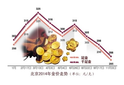 “從2008年美國(guó)推出量化寬松政策(QE)以來(lái),國(guó)際金價(jià)一直持續(xù)上漲,并在2011年9月創(chuàng)下了歷史最高價(jià)位1920美元/盎司,這也推高了國(guó)內(nèi)黃金投資的熱情!碧(yáng)金店總經(jīng)理于桂英表示,在美國(guó)結(jié)束這一政策后,金價(jià)開(kāi)始走低也是意料之中。
