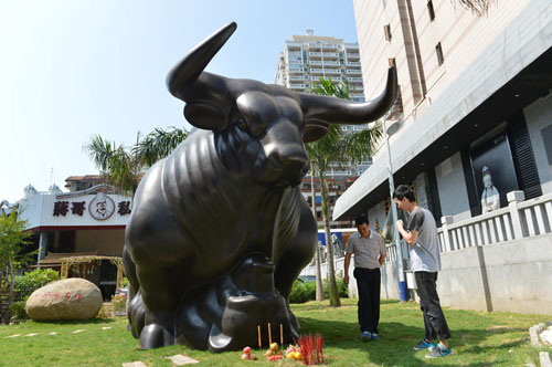 面對股市大跌,股民想出了給銅牛上香的奇招