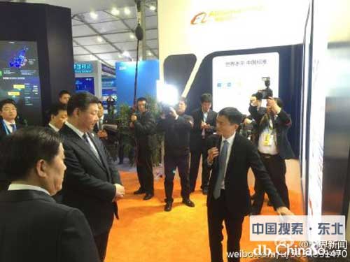16日下午3點(diǎn)左右,習(xí)大大一行來到“互聯(lián)網(wǎng)之光”博覽會(huì)展區(qū)。習(xí)大大最先來到展區(qū)前方的阿里巴巴展臺(tái),饒有興致地觀看展臺(tái)內(nèi)容。習(xí)大大在阿里展臺(tái)駐足了約10分鐘,馬云自任解說員,向習(xí)近平匯報(bào)了阿里巴巴發(fā)展的現(xiàn)狀以及對未來的思考。