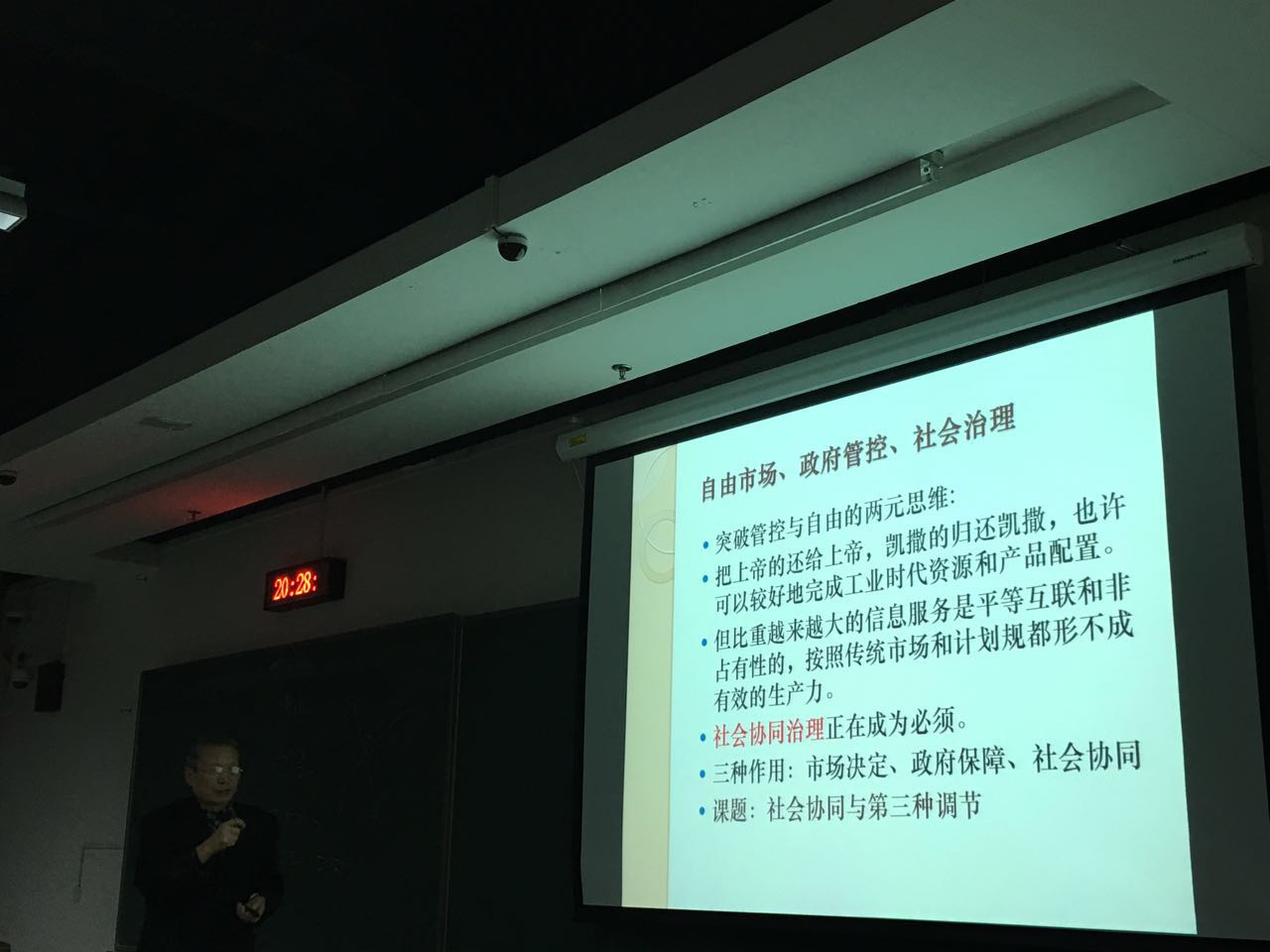 央廣網(wǎng)北京12月23日消息(記者伍剛)舉世矚目的第二屆世界互聯(lián)網(wǎng)大會(huì)烏鎮(zhèn)峰會(huì)剛剛落下帷幕,12月22日晚,信息社會(huì)50人論壇“重建信息時(shí)代的新經(jīng)濟(jì)哲學(xué)”講座所在的北京大學(xué)第二教學(xué)樓301會(huì)議室被北大學(xué)子學(xué)者擠得座無(wú)虛席,中國(guó)信息經(jīng)濟(jì)學(xué)會(huì)名譽(yù)理事長(zhǎng)楊培芳為與會(huì)學(xué)子梳理了250年人類現(xiàn)代經(jīng)濟(jì)學(xué)在信息時(shí)代遭遇失靈、呼喚新經(jīng)濟(jì)哲學(xué)創(chuàng)新的路線圖。