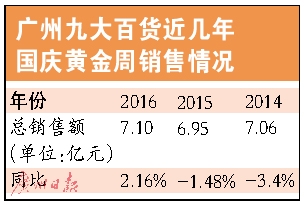 廣州九大百貨:7天總銷售達7.1億元左右,同比增長2.16%