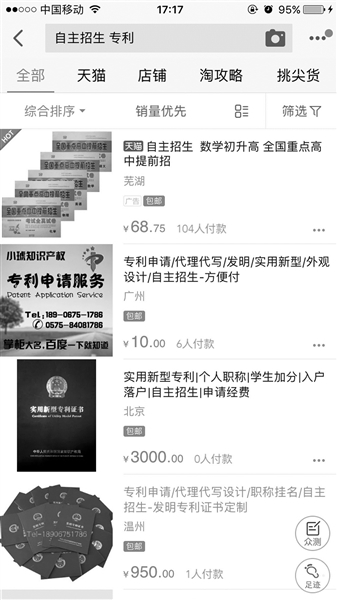 針對高校自主招生 網(wǎng)上有人買賣專利