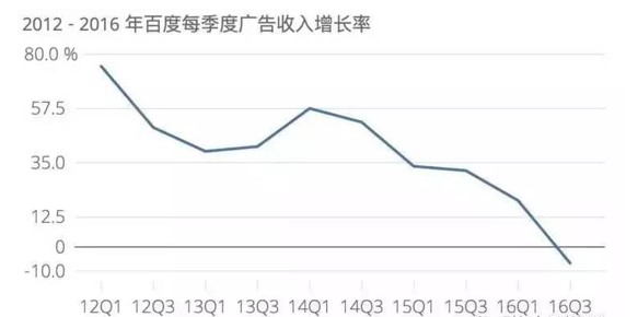 從魏則西事件開始,百度的聲譽一落千丈,一時間無數(shù)閱讀量“10萬+”的自媒體文章指責百度 “惡毒”,引發(fā)其賴以生存的廣告競價模式遭到全面整改,直接導致了百度廣告收入“立竿見影”的下降,相應的公司財報變得難看了,股價也跌了。