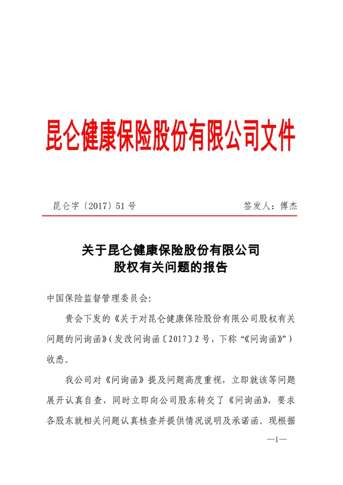 附件:1.《關(guān)于昆侖健康保險(xiǎn)股份有限公司股權(quán)有關(guān)問(wèn)題的報(bào)告》