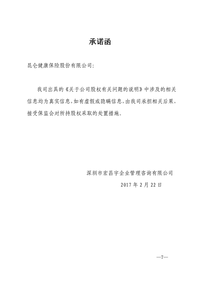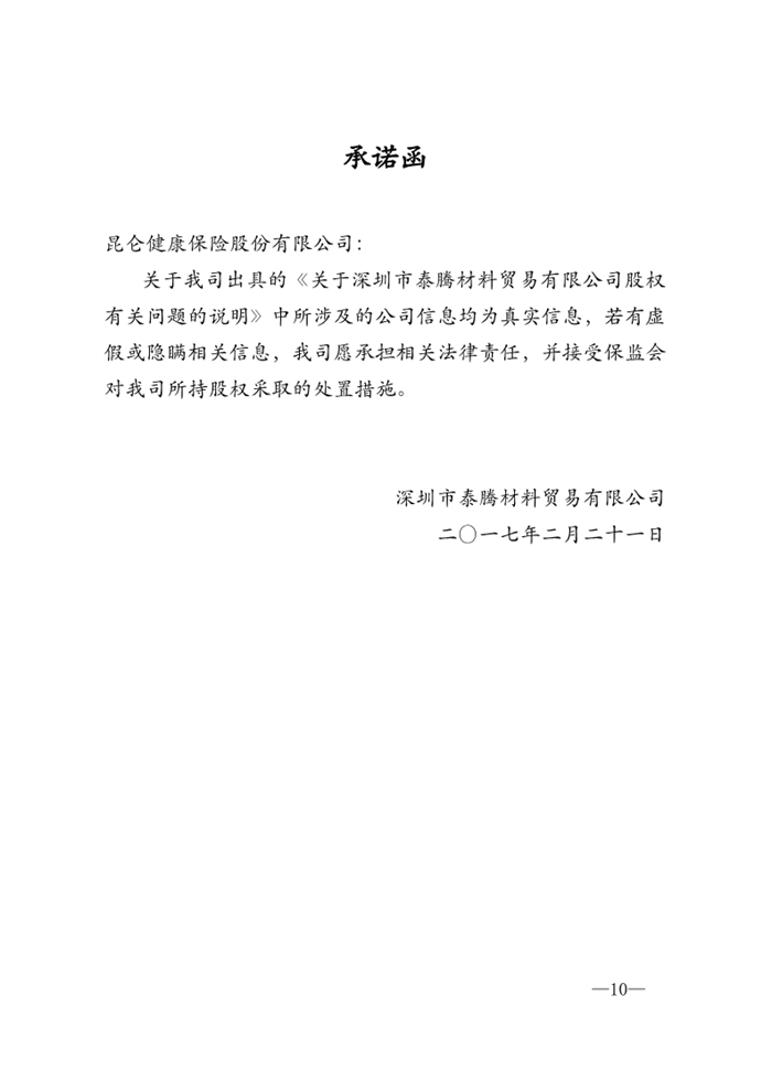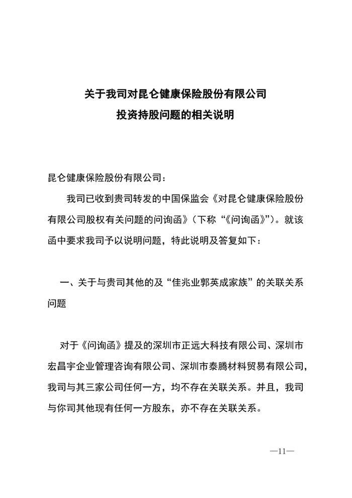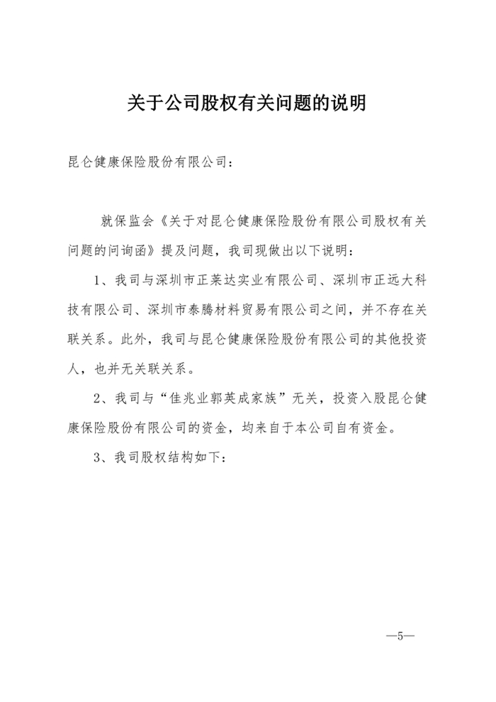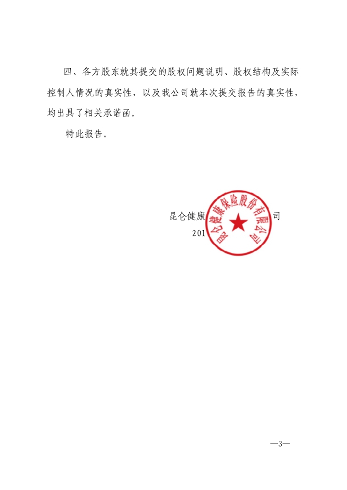 2.《關(guān)于對(duì)昆侖健康保險(xiǎn)股份有限公司股權(quán)有關(guān)問(wèn)題的問(wèn)詢(xún)函答復(fù)事項(xiàng)的相關(guān)材料》