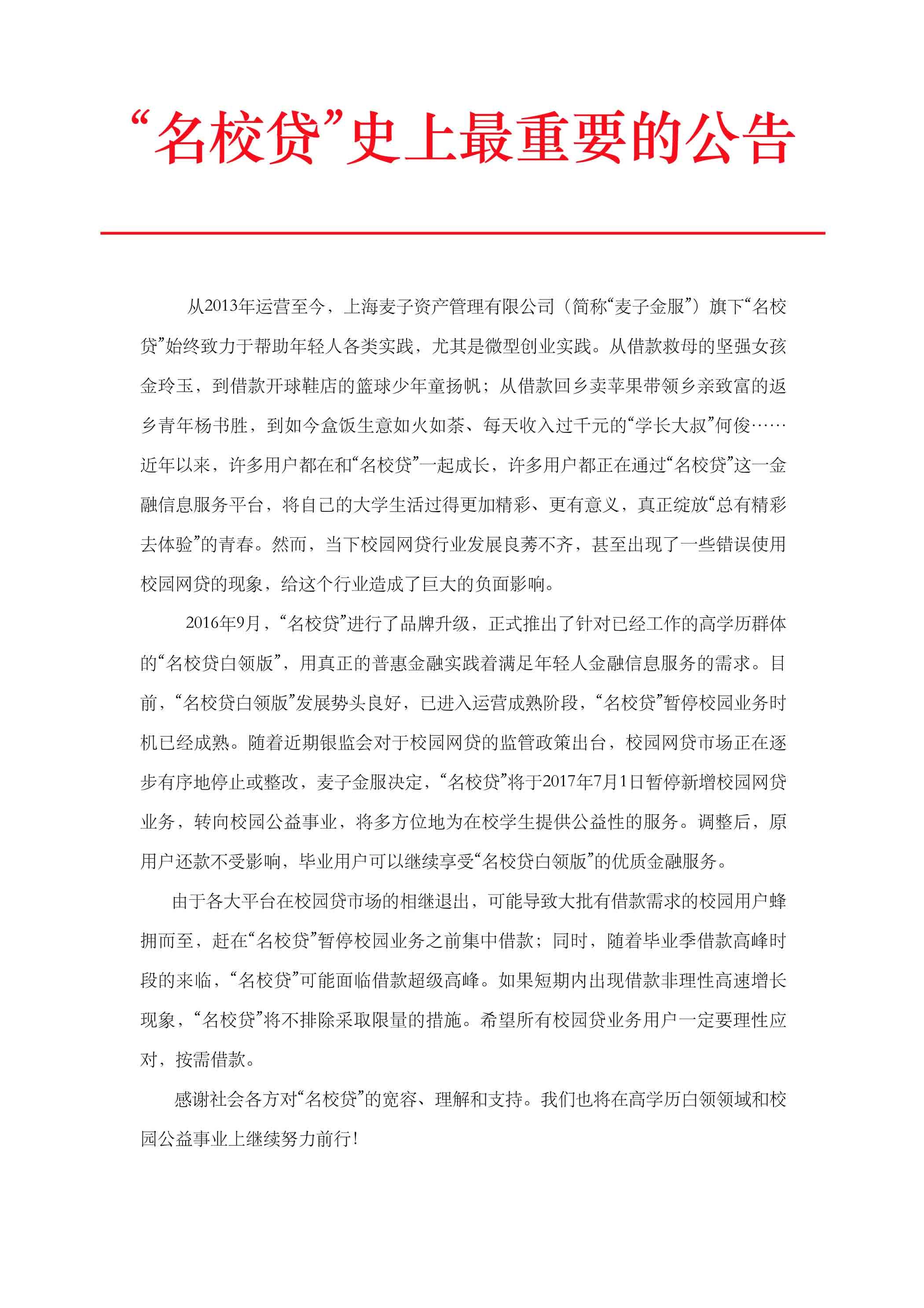 央廣網(wǎng)4月18日消息 4月18日,名校貸宣布7月1日暫停新增校園貸網(wǎng)貸業(yè)務。伴隨監(jiān)管趨緊,多家主攻校園貸的平臺陸續(xù)宣布轉型或退出。