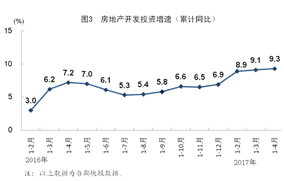 1-4月份,全國房地產(chǎn)開發(fā)投資27732億元,同比增長9.3%,增速比1-3月份加快0.2個百分點,其中住宅投資增長10.6%。房屋新開工面積48240萬平方米,同比增長11.1%,其中住宅新開工面積增長17.5%。全國商品房銷售面積41655萬平方米,同比增長15.7%,其中住宅銷售面積增長13.0%。全國商品房銷售額33223億元,同比增長20.1%,其中住宅銷售額增長16.1%。房地產(chǎn)開發(fā)企業(yè)土地購置面積5528萬平方米,同比增長8.1%。4月末,全國商品房待售面積67469萬平方米,比3月末減少1341萬平方米。1-4月份,房地產(chǎn)開發(fā)企業(yè)到位資金47221億元,同比增長11.4%。