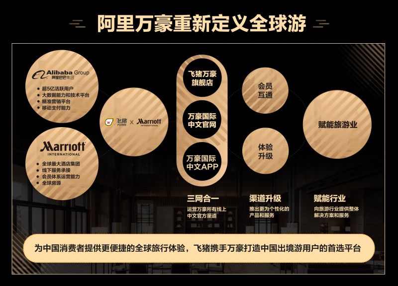 此次合作將使阿里巴巴和萬豪國(guó)際打通線上線下,建立長(zhǎng)期可持續(xù)伙伴關(guān)系,并使飛豬和萬豪成為中國(guó)出境游用戶的首選平臺(tái)。在充分運(yùn)用雙方數(shù)據(jù)積累的基礎(chǔ)上,合資公司將全面接管并運(yùn)營(yíng)萬豪集團(tuán)旗下所有線上中文官方渠道,借助阿里巴巴生態(tài)中超過5億龐大活躍用戶基礎(chǔ)及大數(shù)據(jù)能力,幫助萬豪探索酒店運(yùn)營(yíng)新模式。未來有望為更多酒店集團(tuán)提供服務(wù)。