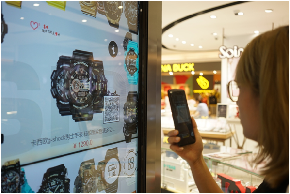 圖/銀泰百貨內(nèi),顧客在體驗(yàn)卡西歐智慧門(mén)店服務(wù)
