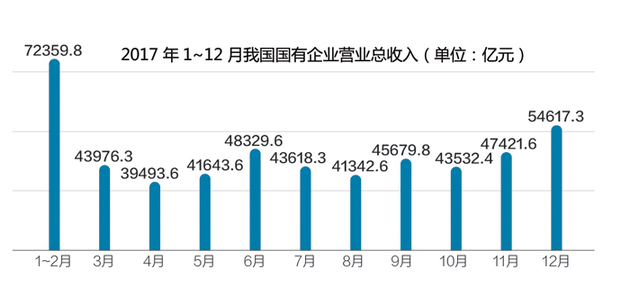 1月23日,財(cái)政部網(wǎng)站發(fā)布2017年1~12月全國(guó)國(guó)有及國(guó)有控股企業(yè)(不含金融類企業(yè))經(jīng)濟(jì)運(yùn)行情況。數(shù)據(jù)顯示,2017全年,國(guó)有企業(yè)營(yíng)業(yè)總收入52.2萬(wàn)億元,同比增長(zhǎng)13.6%;國(guó)有企業(yè)利潤(rùn)總額2.9萬(wàn)億元,不僅23.5%的同比增速遠(yuǎn)超近年水平,近3萬(wàn)億元的總額也創(chuàng)下歷史最高紀(jì)錄。