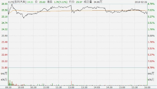 值得關注的是,2月26日,吉利入股戴姆勒的消息在內(nèi)地和香港市場引發(fā)巨大影響。在香港市場,吉利汽車一度漲超8%,最終以6.49%收盤。