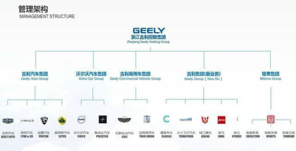 目前,浙江吉利控股集團旗下?lián)碛胁懿賹\?曹操專車目前在中國運營一支超過16000輛的車隊)、太力飛行汽車等業(yè)務。查詢浙江吉利控股集團的管理架構(gòu),旗下包括吉利汽車集團、沃爾沃汽車集團、吉利商用汽車集團、吉利集團、銘泰集團。