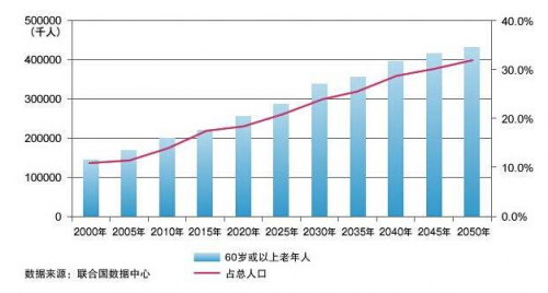 國(guó)務(wù)院公布的老齡事業(yè)發(fā)展和養(yǎng)老體系建設(shè)規(guī)劃預(yù)測(cè),到2020年,全國(guó)60歲以上老年人口將增至約2.55億,獨(dú)居和空巢老年人將增至約1.18億。一般認(rèn)為,老年人口占10%,即意味著進(jìn)入老齡化社會(huì)了,而預(yù)計(jì)到2050年,我國(guó)老年人口將達(dá)峰值4.87億,占總?cè)丝诘?4.9%。