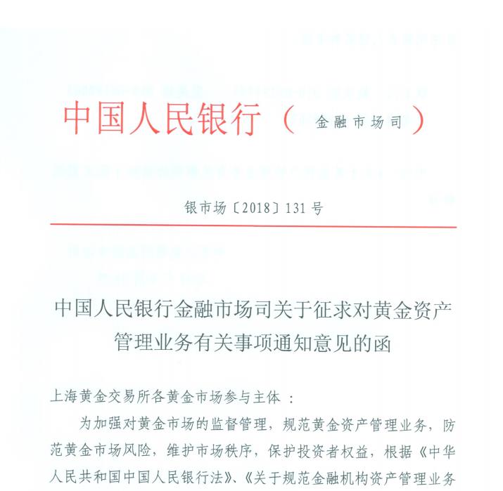央行《關(guān)于征求黃金資產(chǎn)管理業(yè)務(wù)有關(guān)事項通知(征求意見稿)》