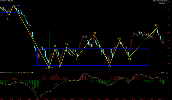今天創(chuàng)業(yè)板指出現(xiàn)了較大幅度的調(diào)整。結(jié)合指數(shù)30分鐘圖型來看,接下來需要關注創(chuàng)業(yè)板52號點向下這筆是否拉回43-46中樞,如果拉回之前43-46中樞,那么需要創(chuàng)業(yè)板繼續(xù)維持30分鐘的弱勢震蕩,同時也不排除還有繼續(xù)創(chuàng)新低的可能。如果拉不回43-46中樞,形成30分鐘三買,那么這就為創(chuàng)業(yè)板指進一步走強創(chuàng)造了契機。因此接下來創(chuàng)業(yè)板指關注的焦點也是30分鐘向下一筆調(diào)整的結(jié)束,是否形成30分鐘三買。