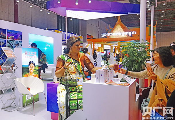在斯里蘭卡展區(qū)上,中國(guó)觀(guān)眾正在品嘗錫蘭紅茶。昨日下午,上海念弟實(shí)業(yè)集團(tuán)有限公司在斯里蘭卡館與其企業(yè)World Mart Ceylon (Pvt) Ltd簽下了一份訂單,前者獲得后者中國(guó)唯一總代理授權(quán),簽訂的意向采購(gòu)金額約一億元人民幣。