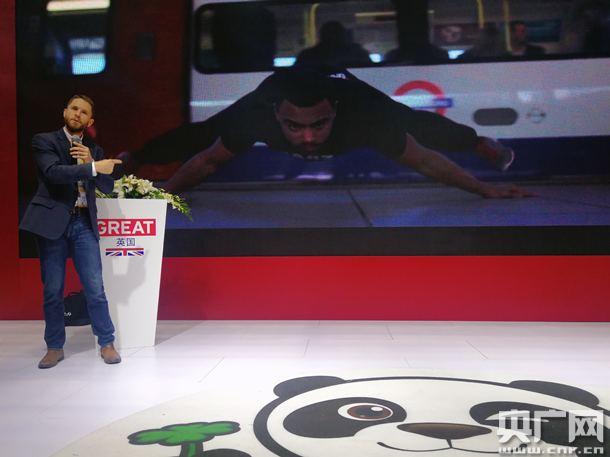英國(guó)館的主題為“非凡創(chuàng)新在英國(guó)”。作為主賓國(guó),英國(guó)帶來(lái)頂尖科技,融入“英倫風(fēng)”的展品當(dāng)中,展示內(nèi)容涉及高端制造業(yè)、汽車(chē)、醫(yī)療、美食、旅游服務(wù)等。圖為英國(guó)公司 Gravity Industries創(chuàng)始人Richard Browning在介紹“反重力套裝”,該款產(chǎn)品能讓穿戴者像鋼鐵俠一樣在天空自由翱翔,吸引了大量人群駐足拍攝。