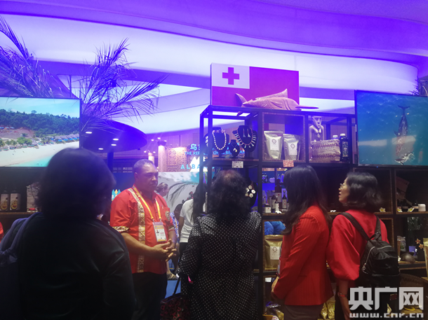 湯加是位于南太平洋的島國(guó),作為對(duì)中國(guó)免簽的國(guó)家,因其旅游業(yè)而被中國(guó)民眾熟知。湯加此次共派來(lái)四人參展,分別為三名企業(yè)負(fù)責(zé)人及一名政府人員。湯加此次的展品主要分為三類(lèi):珍珠、貝殼和椰子殼等制作的手工藝品、香草等制作的食品以及磨砂精油等。
