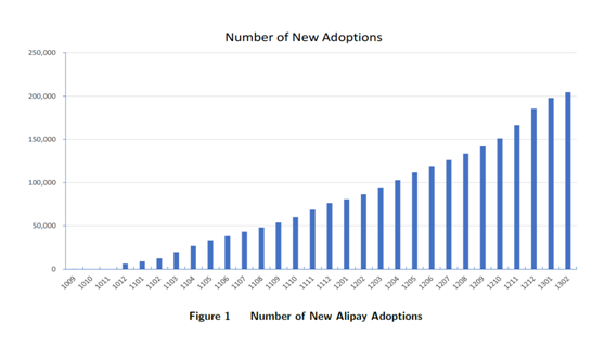 研究小組稱,近年來,在中國,支付寶等移動支付渠道影響消費者的日常消費行為已成為人們共同的直觀感受,但一直缺乏在此基礎(chǔ)上基于經(jīng)濟學模型,對消費和經(jīng)濟影響的實證研究,這正是研究的出發(fā)點。