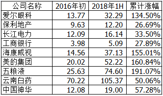 通過數(shù)據(jù)分析可以發(fā)現(xiàn),在過去的兩年多時間里,滬綜指從2016年初的2737.6點,到2018年6月末的2847.42點,幾乎沒有任何漲幅,從整體來看A股的投資者并未能從股票投資中分享中國經(jīng)濟(jì)發(fā)展的碩果;但其實這只是表象,拋開這些高溢價、但質(zhì)量底下的“概念股”,榮獲了“九鼎獎”的9家上市公司股價表現(xiàn)則明顯更加強勁,與市場整體形成了鮮明對照: