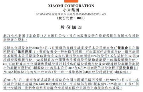 近期股價(jià)大幅跳水的小米開始“自救”。18日早間,小米公司在港交所發(fā)布公告稱,2019年1月17日,于公開市場(chǎng)購(gòu)回614萬(wàn)股股B類股份,平均價(jià)為每股B類股份9.7625港元。公告稱,本公司現(xiàn)有財(cái)務(wù)資源足以支持股份購(gòu)回同時(shí)維持穩(wěn)健的財(cái)務(wù)狀況。