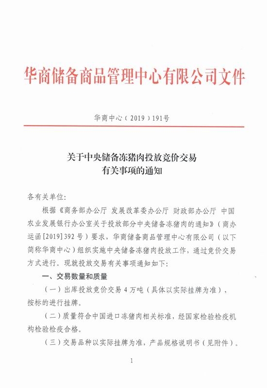 《中央儲(chǔ)備凍豬肉投放競(jìng)價(jià)交易有關(guān)事項(xiàng)的通知》 來源:華儲(chǔ)網(wǎng)