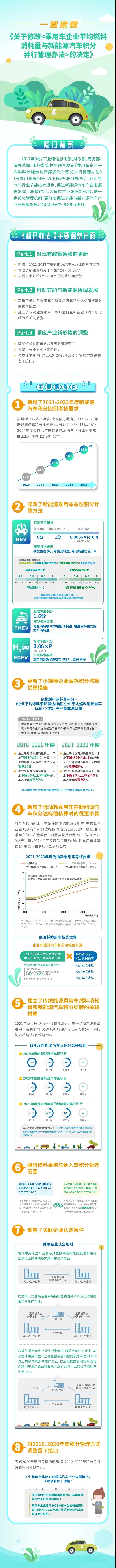 央廣網(wǎng)北京6月22日消息(記者 梁爽)6月22日,工信部、財(cái)政部等五部門發(fā)布了《關(guān)于修改〈乘用車企業(yè)平均燃料消耗量與新能源汽車積分并行管理辦法〉的決定》(下稱《決定》)。此次修改新增了2021-2023年新能源汽車積分比例考核要求,分別為14%、16%、18%,并明確自2021年1月1日起施行。