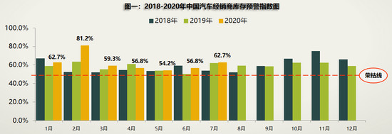 昨日(8月3日),中國汽車流通協(xié)會發(fā)布數(shù)據(jù)顯示,7月經(jīng)銷商庫存預(yù)警指數(shù)為62.7%,較上月上升5.9個百分點,較去年同期上升0.5個百分點,庫存預(yù)警指數(shù)位于榮枯線之上。