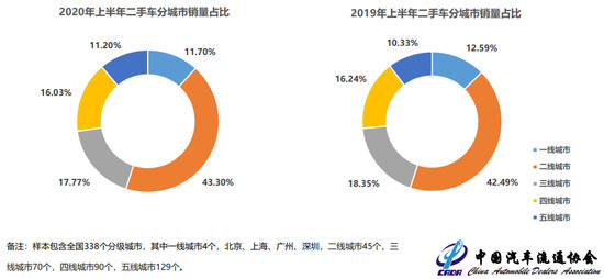 從區(qū)域來看,我國二手車交易的主要陣地仍在二線城市,銷量占比達到43.30%,同比擴大0.81%。在交易價格方面,3萬元以下區(qū)間占比最高,達到34.30%,同比大幅增長7.3個百分點;其次為3-5萬元區(qū)間,占比為21.13%。