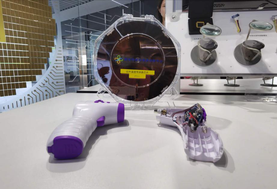 (紅外溫度傳感器芯片展示 央廣網(wǎng)記者王雨馨 攝)