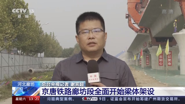 總臺央視記者 謝賓超:這里是河北廊坊大廠回族自治縣京唐鐵路的施工現(xiàn)場,隨著我身后這座790噸的無砟箱梁的緩緩降落,標(biāo)志著京唐鐵路的廊坊的全面進入了橋梁架設(shè)的施工階段。