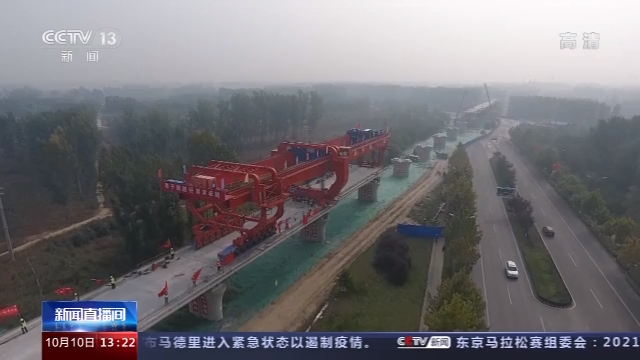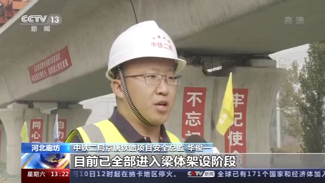 中鐵二局京唐鐵路項目安全總監(jiān) 華俊一:總共532孔箱梁,目前已全部進入梁體架設(shè)階段,截至今年年底,預(yù)計架設(shè)160孔連續(xù)梁,確保如期完成今年的施工生產(chǎn)計劃。
