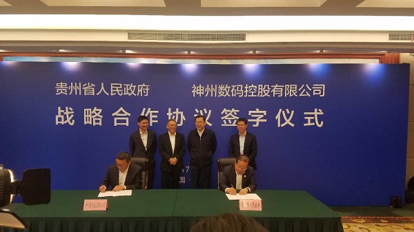 貴州省委副書記、省長孫志剛,神州數(shù)碼控股有限公司董事局主席郭為出席簽約儀式,省委常委、常務(wù)副省長秦如培,神州數(shù)碼控股有限公司CEO林楊分別代表雙方簽署了戰(zhàn)略合作協(xié)議。