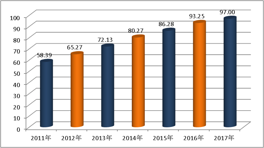 圖1 2011-2017年中國(guó)小康指數(shù)變化示意圖