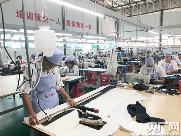 圖為扶貧車間工作場景(央廣記者 劉柏煊 攝)